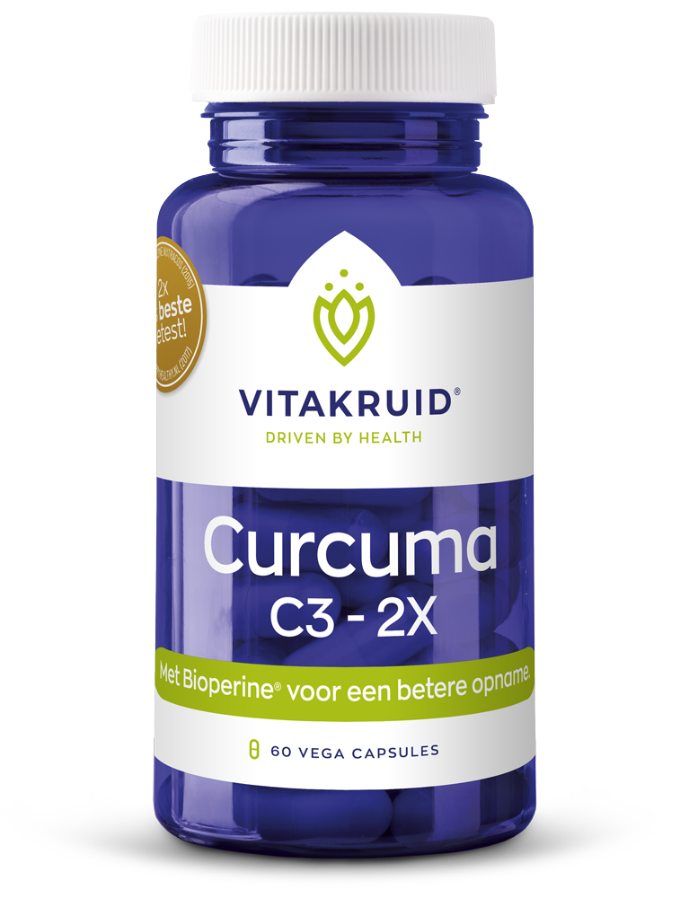 Curcuma C3-2X bevat 650 mg Curcuma C3-complex ™ en 10 mg bioperine™. Curcuma C3 complex betreft een gepatenteerd kwaliteitsmerk van een gestandariseerd extract van de curcuma longa wortel dat 95% curcuminoïden bevat waarvan de belangrijkste zijn: curcumine, bisdemethoxy curcumine en demethoxy curcumine. Deze stoffen zijn krachtige anti-oxidanten ter bescherming van gezonde cellen en weefsels. Curcuminoïden zijn vrije radicalen vangers.